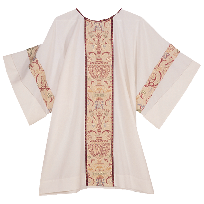 Celebrate sacred unions with this elegant Deacon Dalmatic, featuring a beautiful Coronation Design. This vestment embodies reverence and joy, crafted for special liturgical occasions and wedding masses. Its sophisticated design adds depth and beauty to any ceremony, making it a distinguished addition to a deacon's attire.