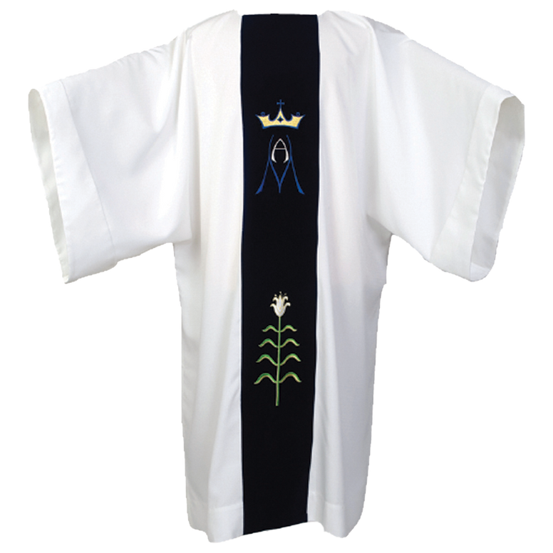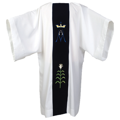 Celebrate sacred unions with this stunning Marian Design Dalmatic. Featuring exquisite Blue Velvet embroidery, this vestment embodies reverence and joy. Its elegant craftsmanship makes it perfect for wedding masses and special liturgical occasions. Elevate your ceremony with this beautifully adorned garment.