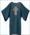 Embroidered Celtic Cross Dalmatic- Green. Deacon Dalmatic, Washable amply cut (60" wide x 48" long) fashioned from wrinkle resistant polyester fabrics. Matching Deacon stole is # 510 Matching Priest stole is # 610 Matching Chasuble is #810